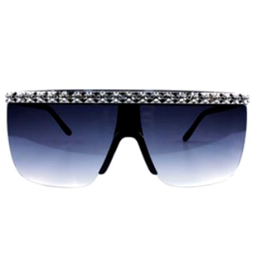 Square Shield Frame Rhinestone Trim Retro Styled Sunglasses Review